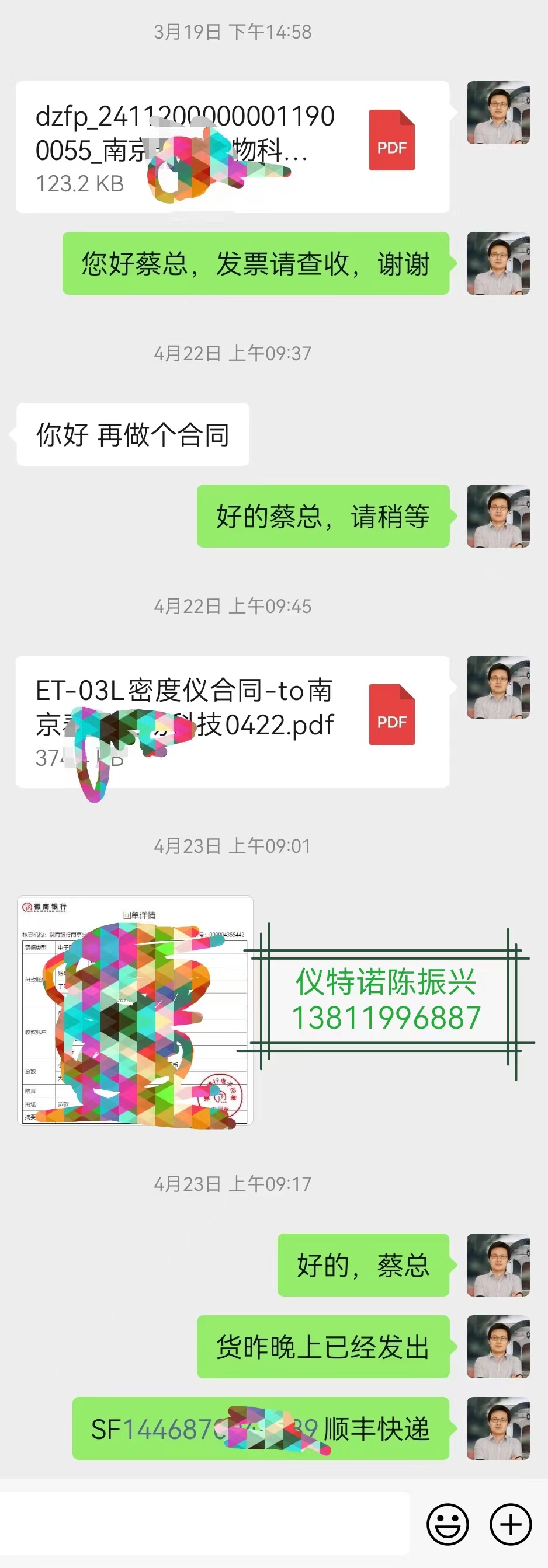 這位液體密度計ET-03L的儀器商老客戶,3月份下單了一臺,4月聯(lián)系直接就讓做合同,一句多余的話也沒有,這信任感是滿滿的啊!
