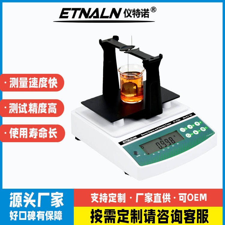 醋酸濃度與密度測試儀ET-01AA、ET-02AA系列產品是根據阿基米德原理,采用德國進口高精度測量傳感器先測得醋酸密度值SG,然后由密度值自動計算出醋酸濃度%、波美度Be;測量精準、簡便快速、可靠性高等特點;廣泛應用于醋酸上游生產商、下游醋酸采購商、制藥、染料、農藥、橡膠、塑料原料、研究實驗單位…等;已成為各大化工產品制造廠的必備理化檢測儀器!